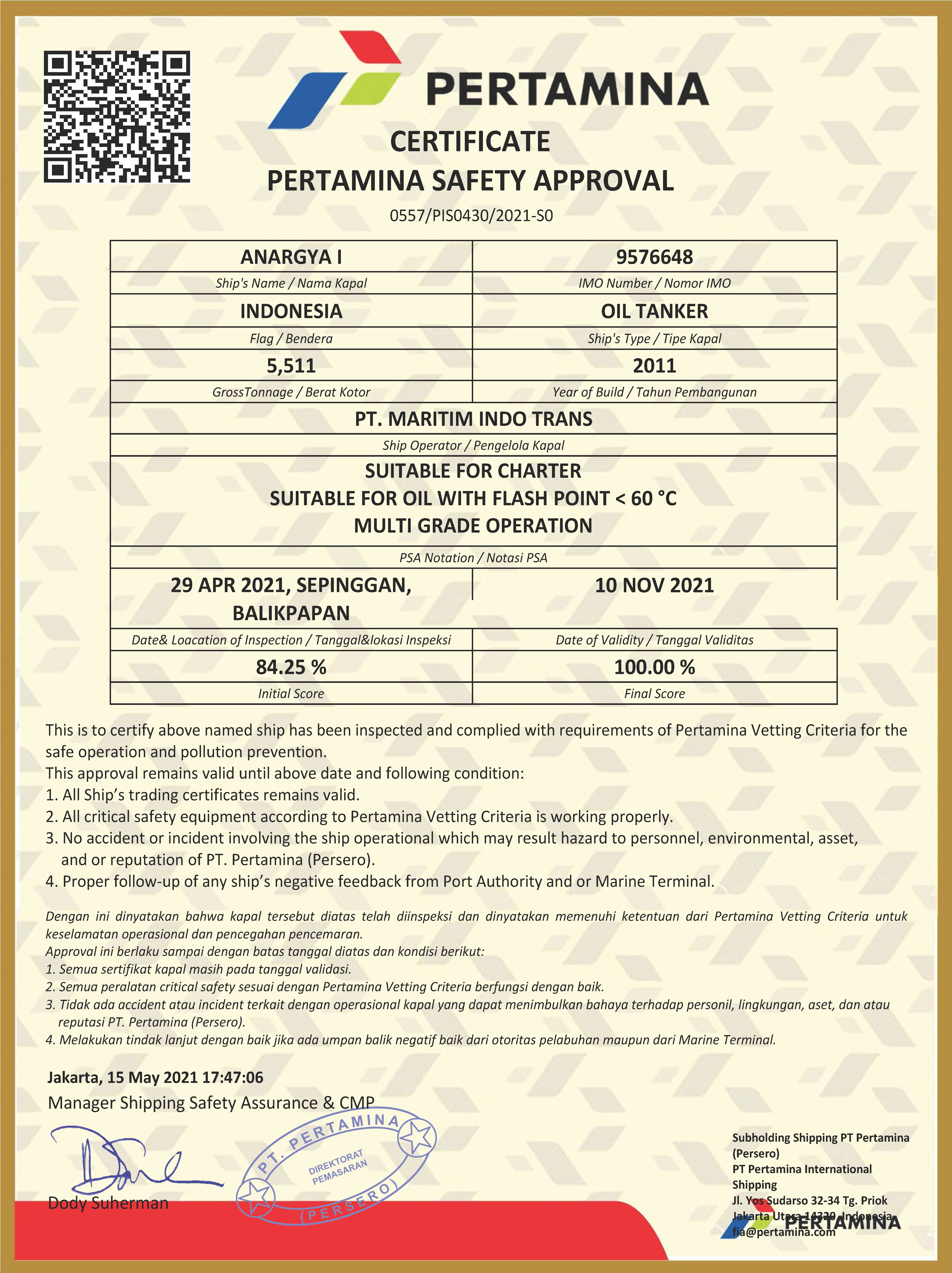 This company is a Shipping Company which is primary involved in owning and managingof vessels. The Company has established Health, Safety, Security and Environmental Management System (HSSE) to meet the company needs and objectives. It is designed to comply with standards as such to meet the Flag Administration and Classification Society requirements, regulatory and organizational requirements.